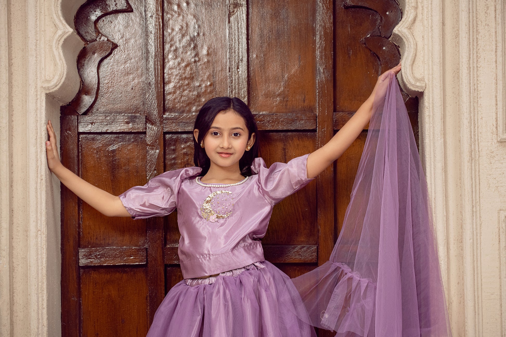 Eid special hand embalished shirt with kora dabka and resham specially designs for eid fabric is silk and paired with soft Net lehnga& duppta