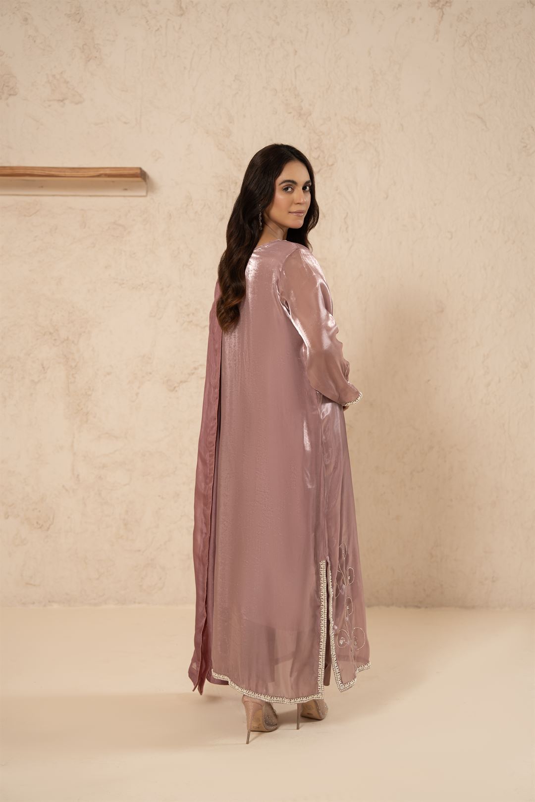 Elevate your festive style with our Zarmin — Mauve Shine a full length kaftan shirt , a timeless outfit designed for elegance and comfort.
