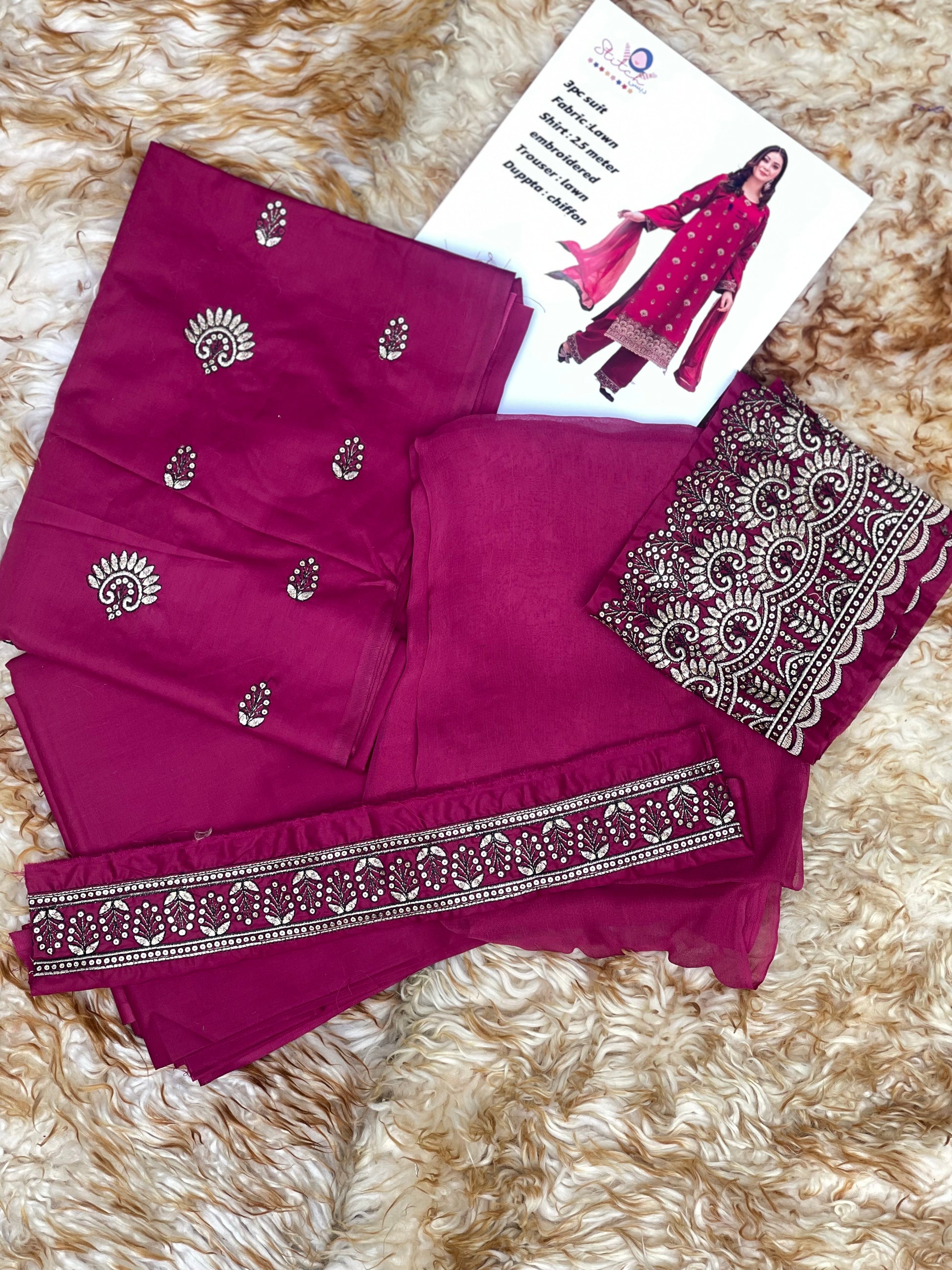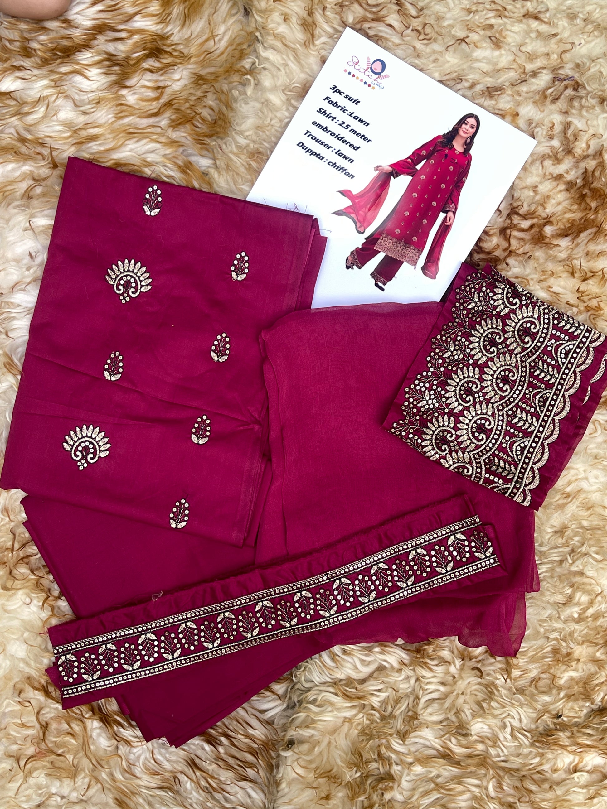A timeless expression of tradition, the Afsaneh Embroidered Suit features exquisite embroidery on a gracefully tailored shirt, paired with a classic trouser and an elegant dupatta. Perfect for festive gatherings and cultural celebrations, this ensemble embodies heritage with a touch of sophistication.